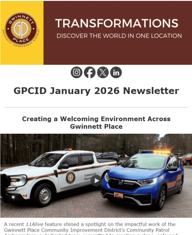 DULUTH, GA – June 26, 2025 — Gwinnett Place Community Improvement District (GPCID) is proud to announce a new partnership with Signal, a private sector security organization, to provide round-the-clock enhanced public safety coverage throughout Gwinnett’s central business district. Signal provides uniformed officers, known as Gwinnett Place Ambassadors, who are visible daily throughout the district,…