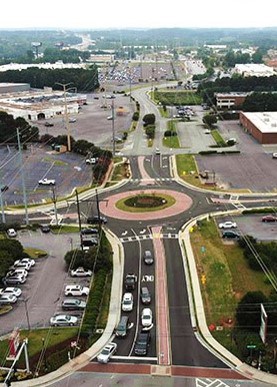 The Gwinnett Place CID worked in partnership with the Gwinnett County Department of Transportation and the State Road and Tollway Authority to construct a roundabout on Venture Drive at Day Drive that improves traffic flow and reduces conflict points in the congested area. Roundabouts have been proven safer and more efficient than other types of circular intersections. According to research by the U.S. Department of Transportation Federal Highway Administration, roundabouts have a 35% reduction in all crashes, 76% reduction in injuries and more than 90% reduction in fatalities. Roundabouts also are safer for cyclists and pedestrians when crossing traffic.