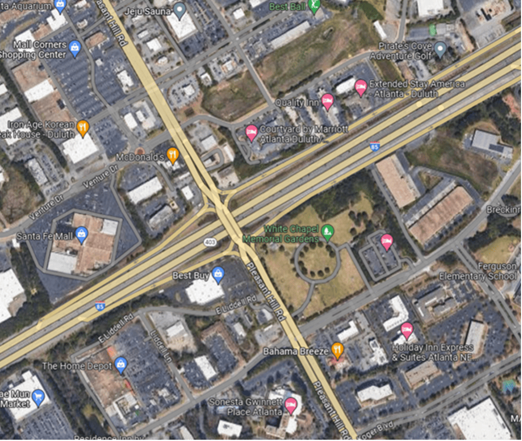 While the Pleasant Hill Road at I-85 Diverging Diamond Interchange (DDI) continues to function efficiently today, as traffic continues to grow on Pleasant Hill Road, traffic levels will begin to exceed the DDI’s capacity. Later this decade, the DDI’s operation will have an unacceptable level of service. Efforts are beginning to visualize the future of Pleasant Hill Road and the interchange with I-85.