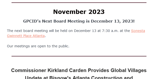 GPCID’s November 2023 E-news includes a recap of the Bisnow Atlanta Construction and Development Summit, West Liddell project progress updates and more.